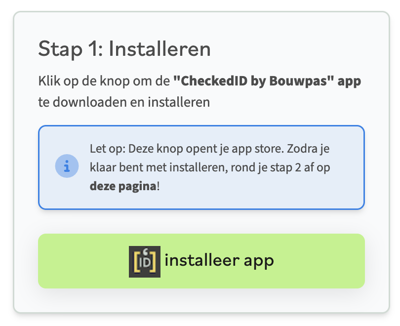 First, temporarily install a separate app for the ID check. You can recognize the app by the Bouwpas logo with “ID” on it.