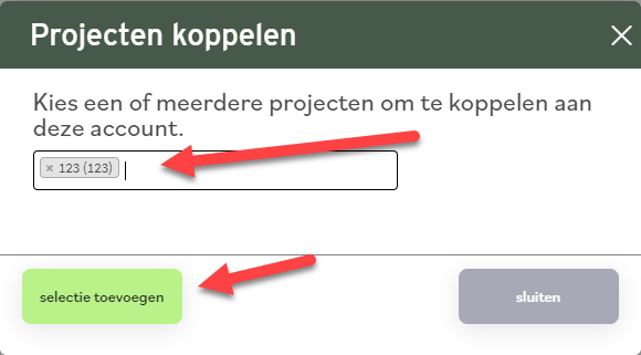 - Dezelfde procedure volg je als je één project of verschillende projecten wilt toevoegen