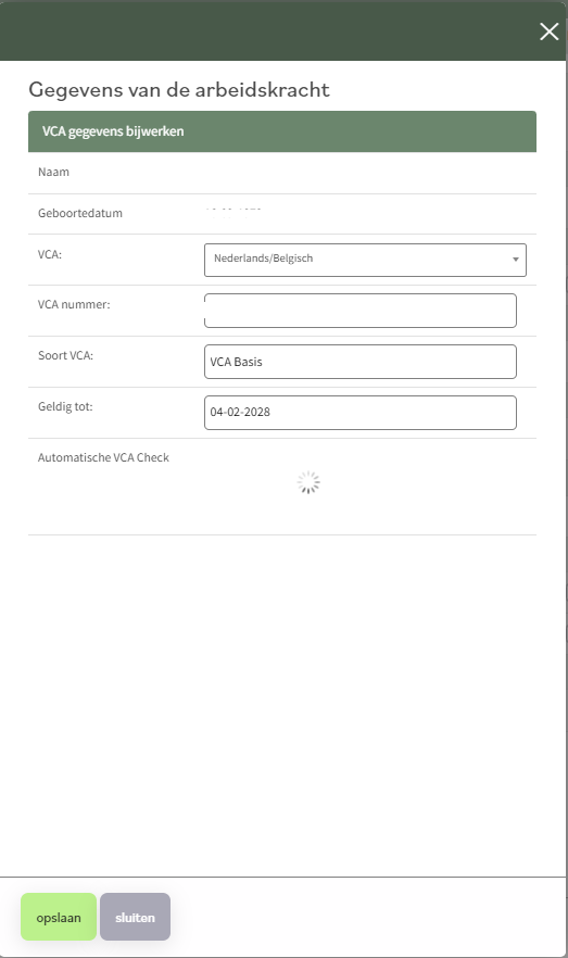 Is het certificaat verlopen of zijn de VCA-gegevens onjuist? Klik op het symbool om de gegevens alsnog in te vullen of aan te passen.
